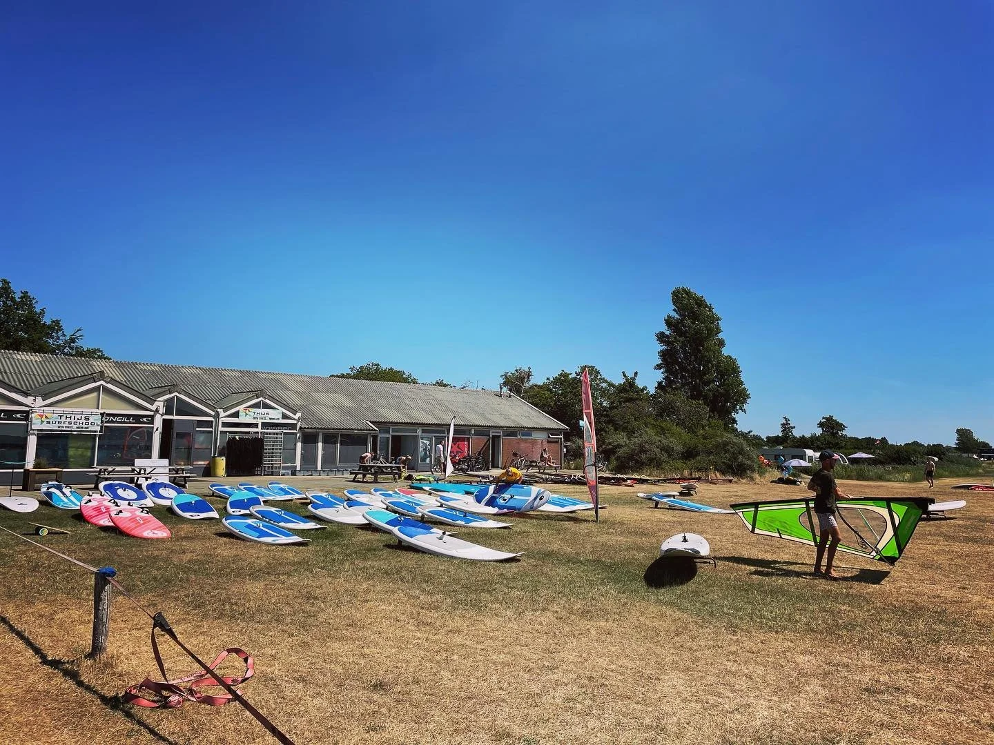 Thijs Surfschool heeft een mooi plekje aan het Veerse Meer op camping RCN de Schotman in Kamperland. Je bereikt ons makkelijk met de fiets, te voet, met de auto én natuurlijk via het water. De auto of camper mag je bij ons gratis parkeren aan het water.